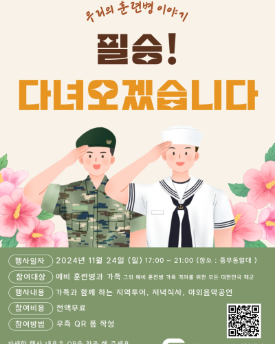 아이들뿐만 아니라 부모인 저희들도 좋은 추억이 되었습니다. 덕분에 훈련소 잘 보내고 들어왔습니다. 기획해주신 분들께 감사드립니다.